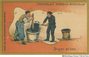 Au début des années 1900, la Maison Guérin-Boutron avait ajouté des petites images dans ses plaques de chocolat pour fidéliser ses clients. Les collectionneurs se sont vite rués sur ces chromolithographies. C’était le début de l’imagerie publicitaire reprise par bien d’autres grandes marques par la suite (voir sur le site Delcampe).